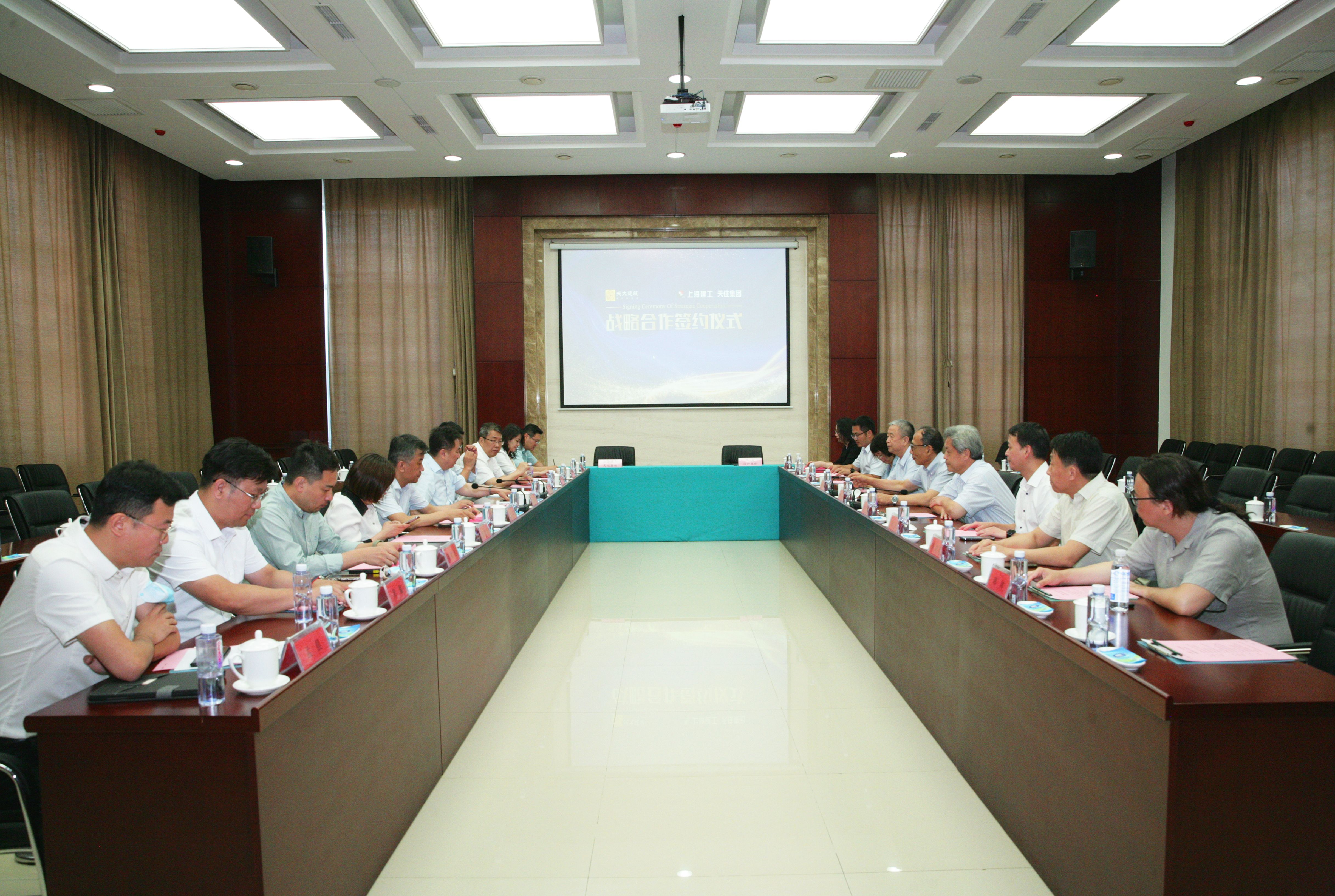會(huì)上,天住集團(tuán)所屬的天住總包、華惠安信兩個(gè)公司圍繞公司概況、主營(yíng)業(yè)務(wù)和產(chǎn)業(yè)優(yōu)勢(shì)進(jìn)行了簡(jiǎn)要介紹。康董事長(zhǎng)對(duì)天大設(shè)計(jì)總院程董事長(zhǎng)率隊(duì)來(lái)訪表示熱烈歡迎,并對(duì)總院長(zhǎng)期以來(lái)給予天住集團(tuán)的支持和幫助表示衷心感謝。他表示,天住集團(tuán)近年來(lái)穩(wěn)健發(fā)展,得益于集團(tuán)全產(chǎn)業(yè)鏈的協(xié)同聯(lián)動(dòng)、多業(yè)融合。自牽手上海建工集團(tuán)實(shí)現(xiàn)混改以來(lái),天住集團(tuán)學(xué)習(xí)與秉承上海建工“三大文化基因”,切實(shí)提高天住集團(tuán)市場(chǎng)意識(shí)和核心競(jìng)爭(zhēng)力。天大設(shè)計(jì)總院依托天津大學(xué)的人才、學(xué)科和技術(shù)優(yōu)勢(shì),歷經(jīng)70年發(fā)展,擁有建筑設(shè)計(jì)、城鄉(xiāng)規(guī)劃、文物保護(hù)等12項(xiàng)國(guó)家級(jí)設(shè)計(jì)資質(zhì)與許可,是國(guó)內(nèi)重點(diǎn)高校中最早成立建筑、規(guī)劃雙甲級(jí)資質(zhì)的設(shè)計(jì)研究院之一。本次與天大設(shè)計(jì)總院簽署戰(zhàn)略合作框架協(xié)議實(shí)現(xiàn)強(qiáng)強(qiáng)聯(lián)合,希望雙方共享行業(yè)資源信息,優(yōu)勢(shì)互補(bǔ),在城市更新、古建筑保護(hù)修繕利用、裝飾裝修、裝配式建筑、機(jī)電工程、EPC和科研創(chuàng)新等領(lǐng)域積極探索合作新路徑、新模式,共同打造工程設(shè)計(jì)和工程總承包合作共同體,助推雙方實(shí)現(xiàn)高質(zhì)量發(fā)展。程萬(wàn)海董事長(zhǎng)在講話中高度贊賞了天住集團(tuán)近年來(lái)在全鏈產(chǎn)業(yè)發(fā)展中的積極探索,他表示,天住集團(tuán)多年來(lái)堅(jiān)持創(chuàng)新驅(qū)動(dòng)發(fā)展,大力推動(dòng)建筑全產(chǎn)業(yè)鏈發(fā)展,已成為多業(yè)融合的大型國(guó)有全鏈產(chǎn)業(yè)集團(tuán),尤其是下屬華惠安信公司在天津裝飾裝修行業(yè)具有較大的市場(chǎng)影響力。天住集團(tuán)引入世界500強(qiáng)上市公司上海建工集團(tuán)成功實(shí)現(xiàn)混改,將天住集團(tuán)綜合實(shí)力和市場(chǎng)競(jìng)爭(zhēng)力提升到全新高度,隨著國(guó)內(nèi)建筑業(yè)市場(chǎng)日漸飽和,競(jìng)爭(zhēng)日趨激烈,單一的專業(yè)化建筑服務(wù)越來(lái)越不能滿足業(yè)主方的需求,具有可研、規(guī)劃、設(shè)計(jì)、施工和運(yùn)營(yíng)的大型綜合建筑集團(tuán)將是未來(lái)行業(yè)發(fā)展主流。此次天大設(shè)計(jì)總院與天住集團(tuán)簽署戰(zhàn)略合作框架協(xié)議,希望雙方加強(qiáng)溝通交流,發(fā)揮各自產(chǎn)業(yè)優(yōu)勢(shì),加快推動(dòng)政府項(xiàng)目承攬、工業(yè)化建造、裝飾裝修、EPC等領(lǐng)域合作,盡快實(shí)現(xiàn)項(xiàng)目落地,共同打造長(zhǎng)期、穩(wěn)定、可靠的戰(zhàn)略合作伙伴關(guān)系,實(shí)現(xiàn)互利共贏。