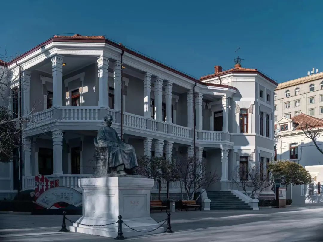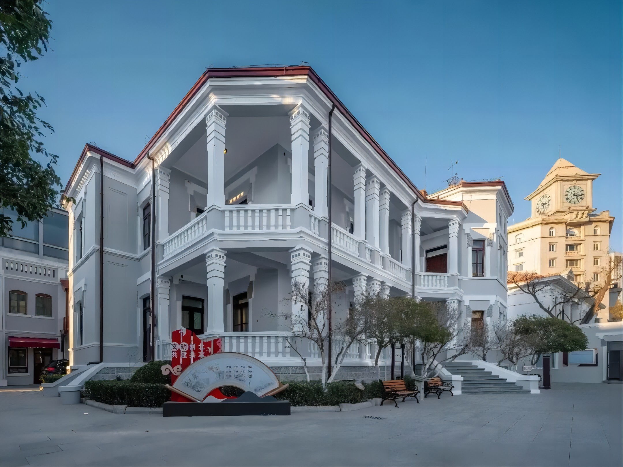梁?jiǎn)⒊f居由“舊居”、“飲冰室”書(shū)齋及附屬建筑組成,位于天津市河北區(qū)民族路12-16號(hào),2021-2022年“舊居”修繕,2023年完成“飲冰室”書(shū)齋的修繕?lè)桨妇幹疲u(píng)審。舊居建于1914年,西式樓房,磚木結(jié)構(gòu),坡頂出檐,兩層建筑帶一層地下室,設(shè)有開(kāi)敞柱廊。