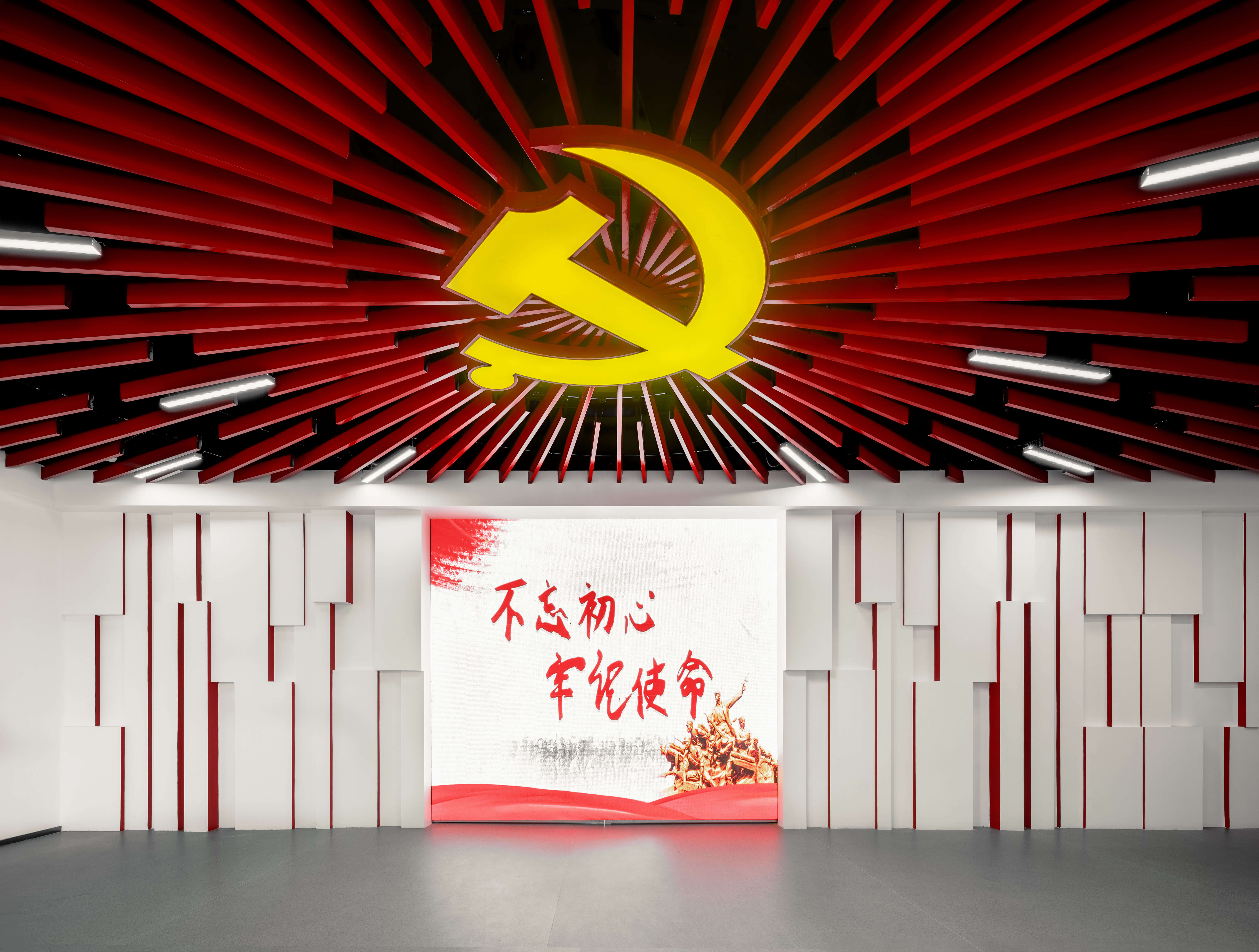 本展區內設入黨誓詞宣誓區域,采用凹形造型設計,以圖文展板、立體字和LED大屏有機結合,融合打造嚴肅靜穆的入黨宣誓區域,重溫入黨誓詞,印證“不忘初心 牢記使命”的黨員本色。右側長征路線圖以電子壁掛沙盤的形式點亮長征點位,伴隨講解,令人心情澎湃。