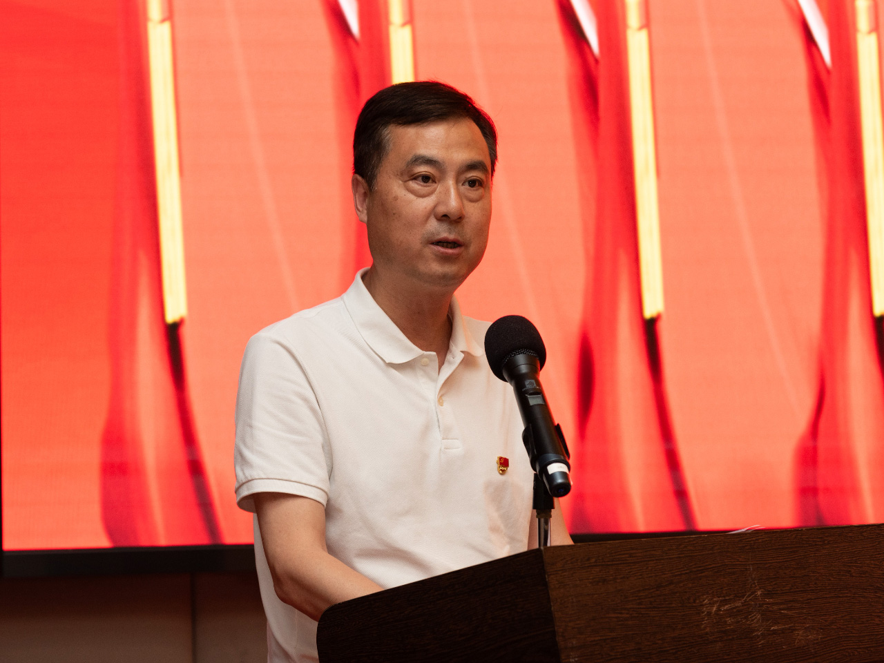 大會現場氣氛莊嚴熱烈,報告廳后方正中懸掛“踔厲奮發 勇毅前行 為建設一流高校科技企業努力奮斗”橫幅標語。會議在雄壯的國歌聲中開幕。