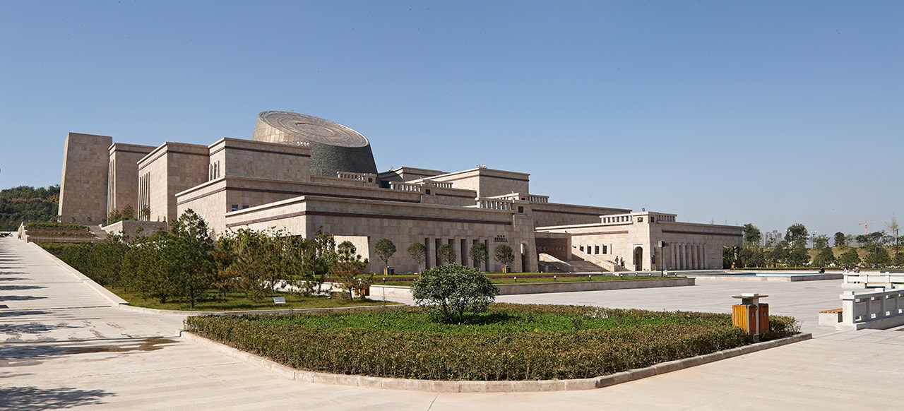 由天大設(shè)計(jì)總院設(shè)計(jì)完成的寶雞市青銅器博物院建于寶雞市石鼓山風(fēng)景區(qū)內(nèi),總用地面積約5.08萬平方米,西靠石鼓山,東接茵湘河,背山面水,南臨301國道,地勢(shì)西高東低。