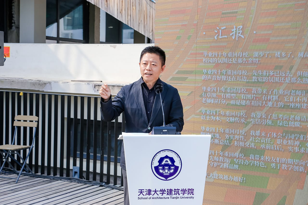 崔愷院士在主旨發言中首先感謝學校和師長們的培養,感謝同學們的陪伴和多年來的共同成長,感謝一起工作的天大校友同事們。崔院士表示把實際的工作和體會拿回來,希望放在教室里成為一個教案,通過跟同學的互動,讓大家看到建筑師專業、建筑學科長久的價值和不竭的活力。