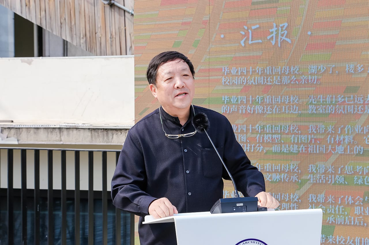 張玉坤簡單回顧了學生生涯中的經歷,表示很高興同學們有這次向母校匯報和重聚的機會,祝愿本土設計在崔院士帶領下取得更加輝煌的成績。