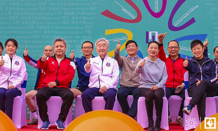 隨后,院長袁大昌、黨委書記程萬海與其他高校院領導一同來到球場中央,為本屆賽事開球。七所高校建筑設計院參賽隊伍、賽事組全體工作人員等共200余人一同參加。值得一提的是,本次賽事東道主華南理工大學的黨委副書記陶韶菁女士正是我校89屆內燃機專業的校友。