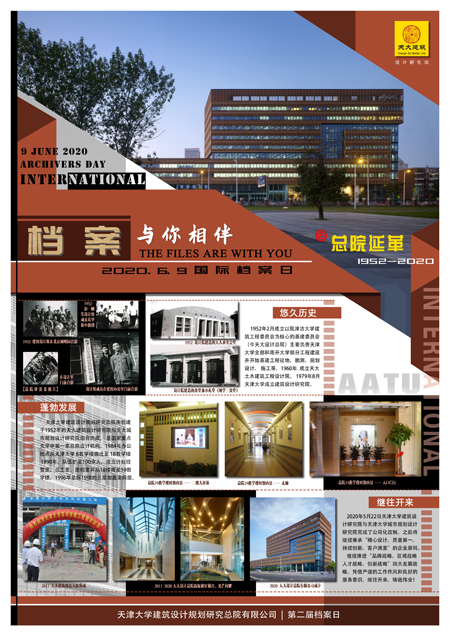 (通訊員:范雅楠)設計檔案記錄了總院的發展歷程,見證了總院68年崢嶸歲月,彰顯了天大人勵精圖治、銳意進取的拼搏精神。2020年6月9日,我們迎來了第十三個“國際檔案日”。
