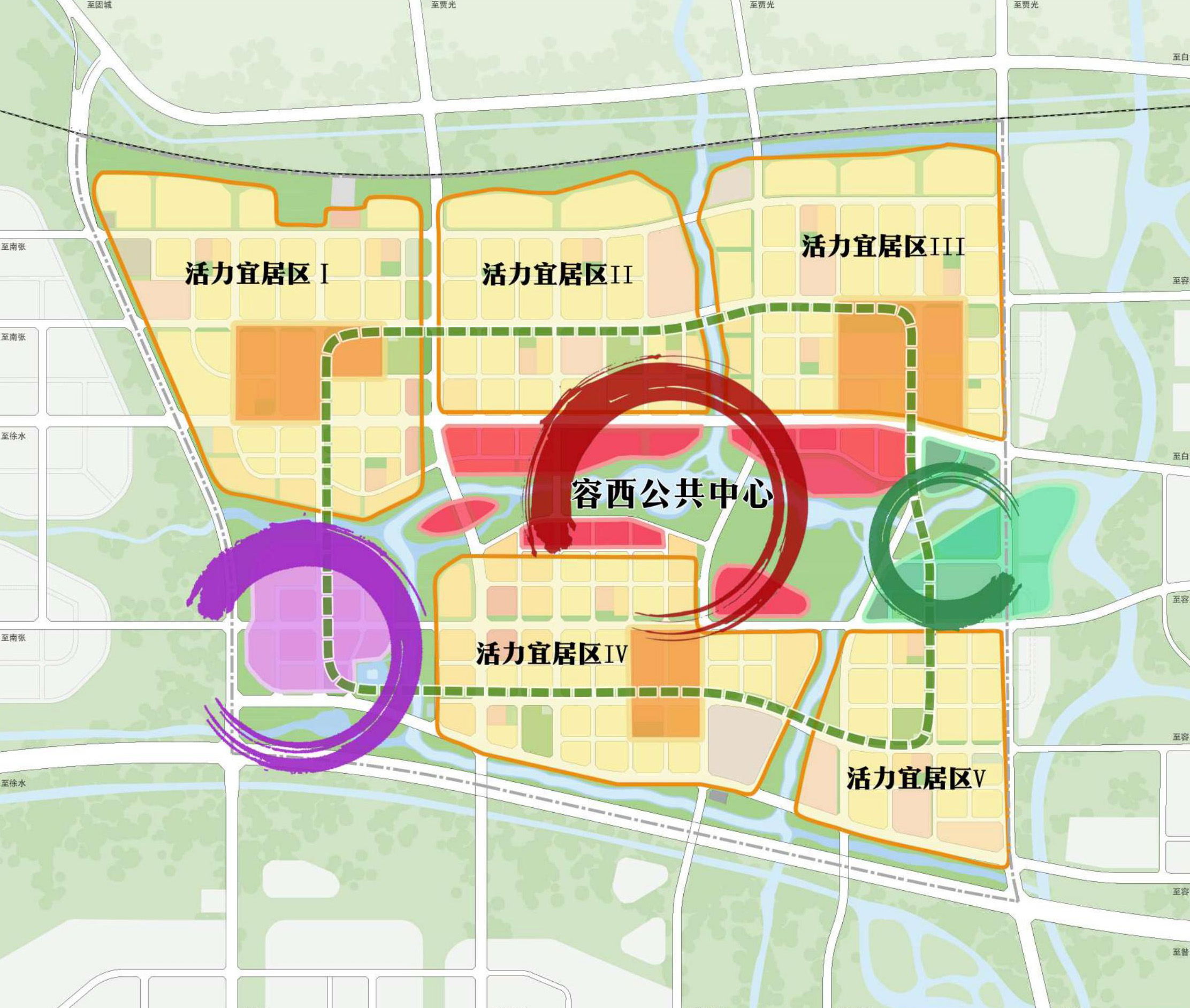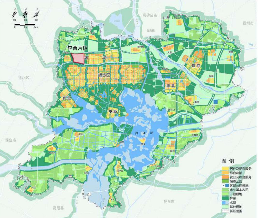 容西片區(qū)緊鄰起步區(qū),與容城縣城、容東片區(qū)、起步區(qū)組團(tuán)協(xié)同發(fā)展,主要城市交通線路、 生態(tài)廊道互聯(lián)互通,服務(wù)搬遷安居,具有保障起步區(qū)及周邊地區(qū)建設(shè)的重要功能。