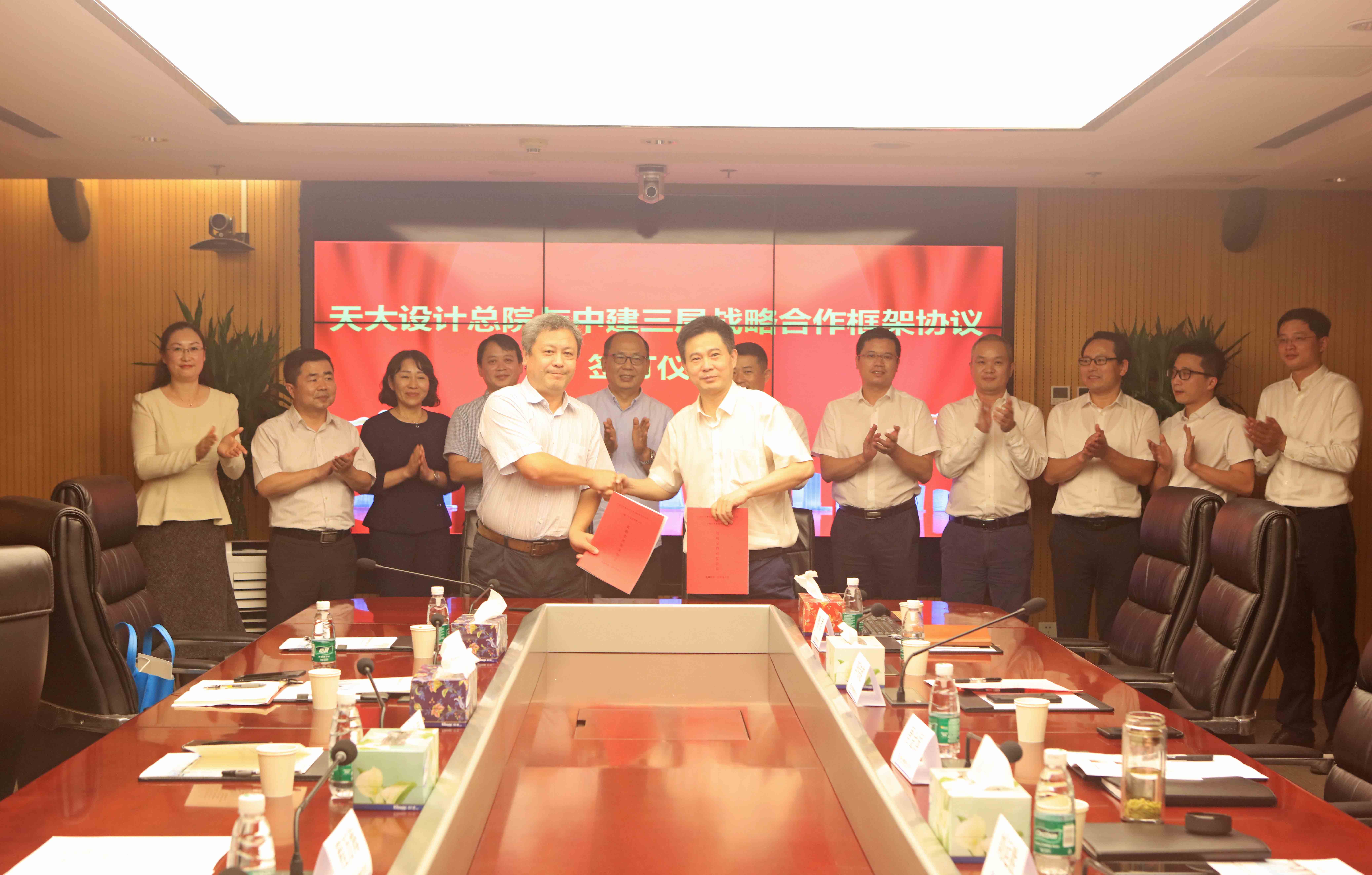 (通訊員:張璐 攝影:中建三局北京公司)9月15日,天津大學建筑設計規劃研究總院有限公司(以下簡稱天大設計總院)與中建三局北京公司(以下簡稱北京公司)在北京舉行戰略合作框架協議簽約儀式。北京公司黨委書記、董事長劉運勝,總經理唐金國,總工程師盧松,天大設計總院黨委書記、董事長程萬海,院長、總經理袁大昌,副院長陳昆等出席簽約儀式。