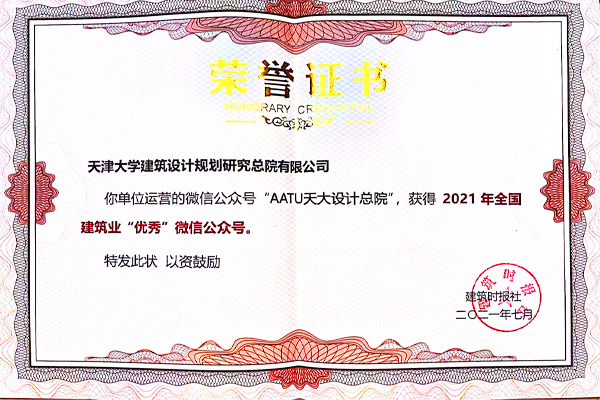 AATU天大設(shè)計(jì)總院喜獲2021年全國建筑業(yè)“優(yōu)秀微信公眾號(hào)”