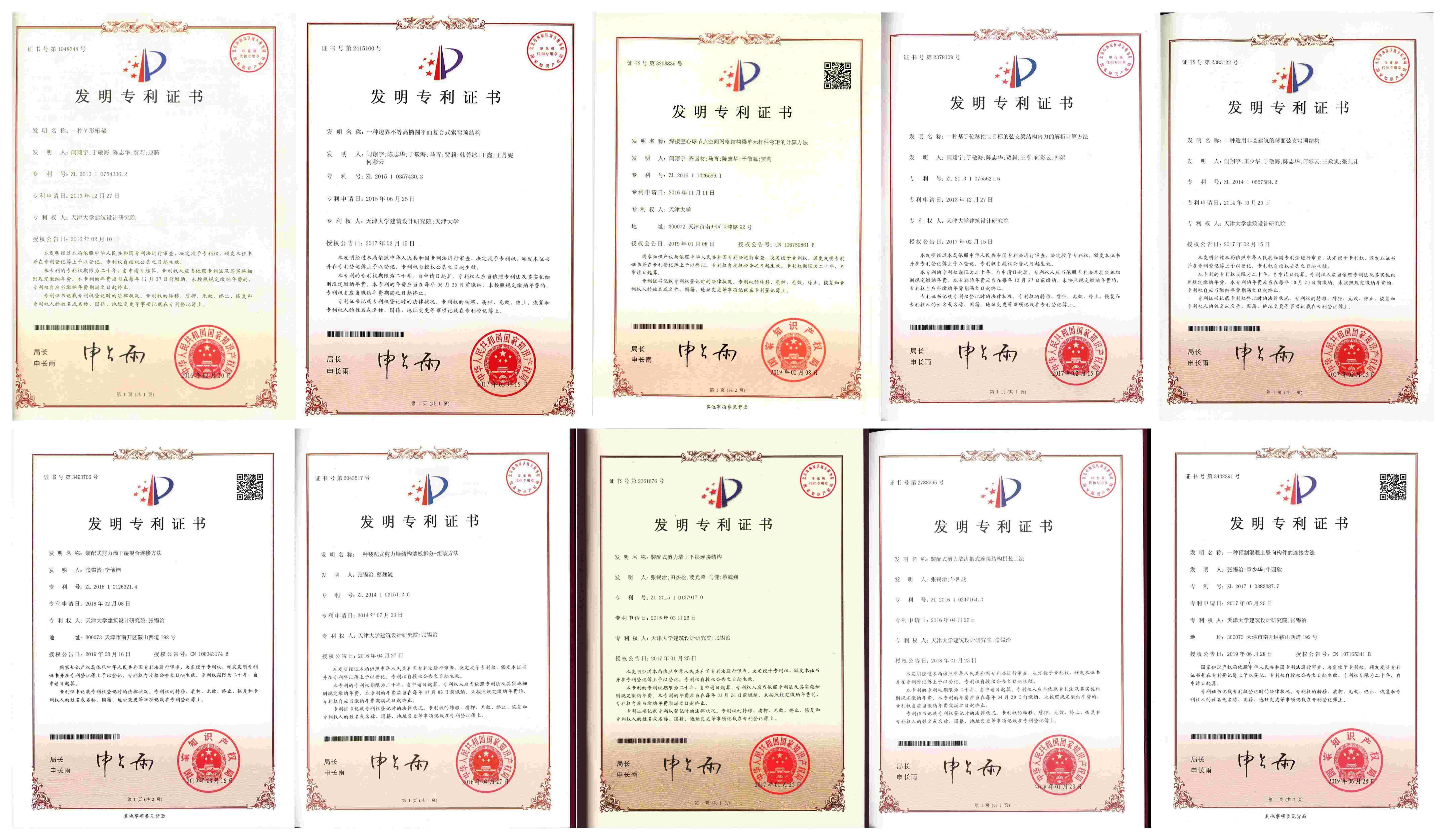 提出非圓建筑的球面弦支穹頂、適用不連續支承的橢球面弦支穹頂結構體系、邊界不等高橢圓平面復合式索穹頂等多種基于拉索的新型復合結構體系專利技術,并通過模型試驗與理論研究,成果實現各項技術成果的轉化應用。
