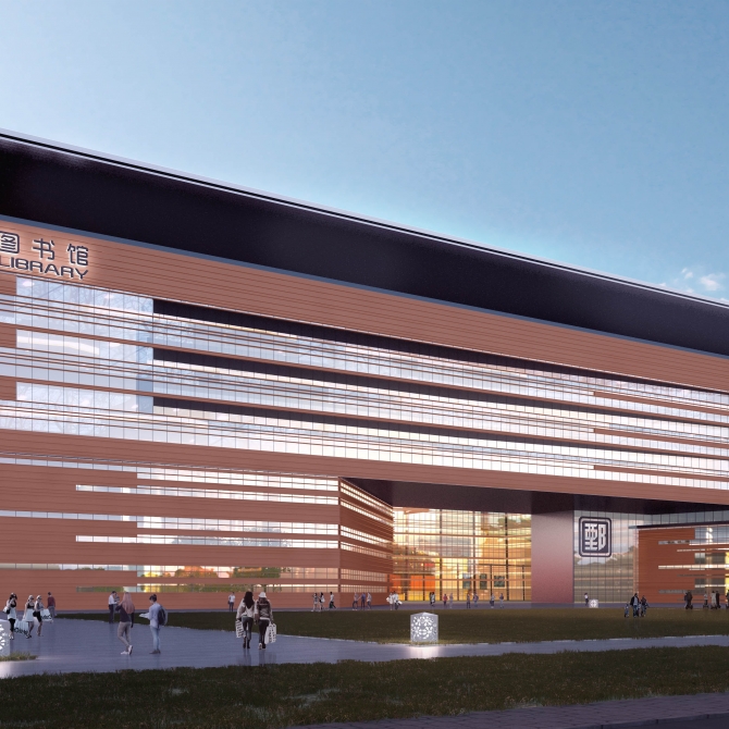 校園建筑規(guī)整方正,經(jīng)濟適用,整體建筑色彩以暖色系為主,突顯了典雅濃厚的學(xué)術(shù)氛圍與銳意進取的學(xué)術(shù)精神。