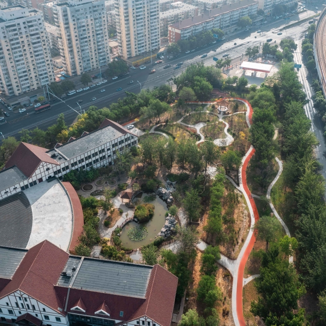 二宮公園承載著幾代人的歷史記憶,設(shè)計延續(xù)場地風(fēng)貌與文脈,最大程度尊重場地現(xiàn)狀,植入全新功能,合理排布路網(wǎng)、廣場、亭廊等景觀元素,使場地?zé)ㄈ灰恍隆?/p>