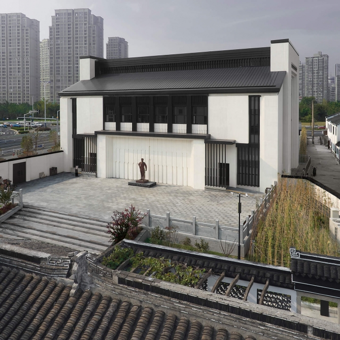 窗欞、門斗、屋檐,無不透露出江南的風骨,與常州市老城區的周邊環境融合在一起,和諧統一,安寧平靜。“打響第一槍”的特色建筑細節,以步槍的原始形態抽象為建筑立面的表達形式,使紀念館建筑在平靜中又表達出了獨特的剛強品格,彰顯了張太雷烈士作為中國共產黨早期的重要領導人之一,領導廣州起義并英勇犧牲在戰斗第一線的光輝革命歷程。