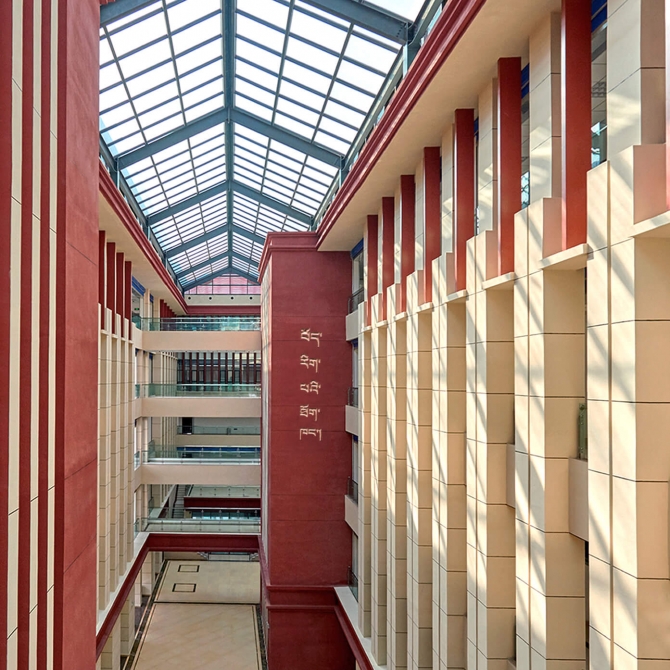 建筑造型充分考慮青海民族大學的歷史文脈,與周邊建筑環境相協調,并因地制宜,體現青海民族大學的文化氣息。堅持以人為本,可持續發展;堅持“綠色、節能、環保” 的設計理念;融校園文化、建筑文化、景觀文化于一體,注重生態節能與人文的和諧統一;從而把青海民族大學藏學院項目建成經得起歷史檢驗的精品工程。