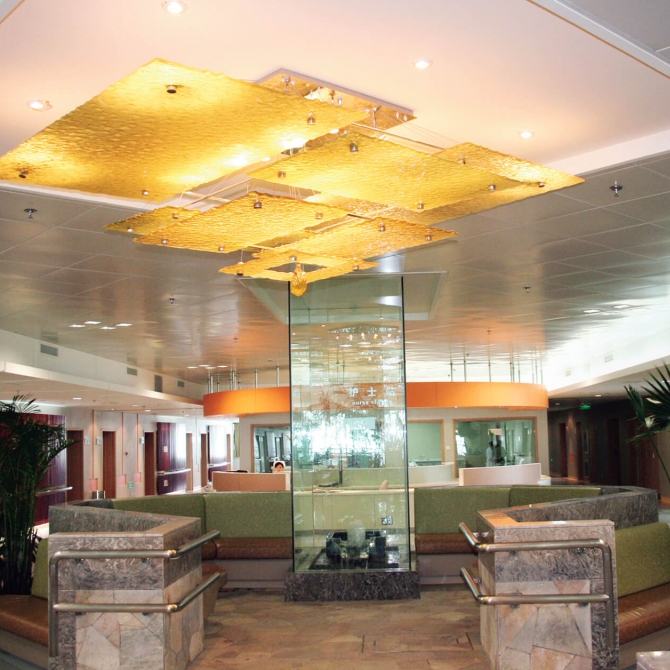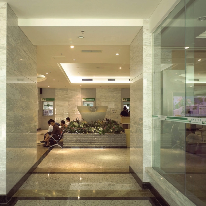 綜合樓為05年山東省濰坊市籌建的兩座重點工程之一,該項目為老院區擴建,場地狹小。設計伊始,院方提出一是打造國內一流,二是注重人性化設計。為實現院方要求,設計團隊經過多方案比選,與院方充分溝通,通過對醫務人員、患者、家屬幾個層面對醫療空間進行解讀,在住院部設計中每層單設家屬接待探視區,配備電話、餐飲等設施,同時變廊為15米寬中廳,在人工環境中引進了自然因素,利用小片草地、疊石、細竹、庭凳等設計元素,創造一個寧靜、開敞的自然空間。病人可以漫步于人造庭院,和家屬也可在此交流信息,以消除病人長期住院所產生的孤寂感。同時設計將醫務人員工作區做為一個模塊從患者生活區中獨立出來。工作區自成體系,有自己的垂直通道,醫務人員由工作人員專用電梯直接進入工作區,與患者區域截然分開互不干擾。護士站在中央,與病房及工作區最近,形式開敞,位置有利于監護病人,充分激發醫護人員良好的工作狀態。