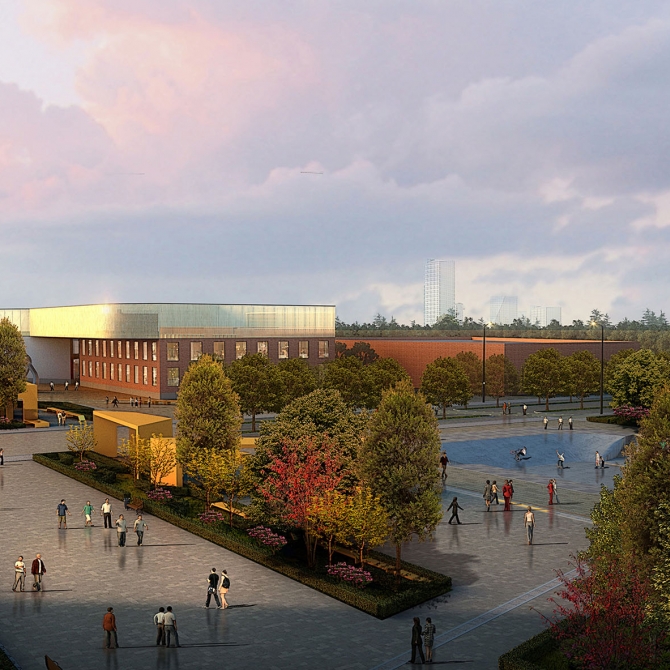 以“百年筑夢”為景觀方案主題,通過傳承歷史文脈的景觀軸線、隱喻琢玉成器的景觀形態和象征百年樹人的景觀結構表現出來。設計團隊提出“一中心、兩理念”的設計思想,即“以學生為中心,注重景觀的文脈延續和生態的可持續”。