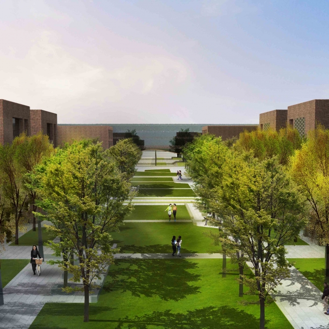 在天津大學北洋園校區景觀設計項目中,傳承百年老校的血脈與基因,引入城市雨洪管理,建設生態可持續校園,并以“以學生為中心”的人性化景觀為核心設計理念貫徹始終。在3700畝的校園景觀中,將生態化措施-雨洪管理系統切實地應用于校園景觀建設中,全面采用“綠色生態、環境友好”的景觀生態化技術措施,成為全國首個在如此大規模場地中系統化、科學化應用生態雨洪管理系統的校園景觀環境設計,同時也使之成為天津這一鹽堿地區建設海綿城市的示范區。