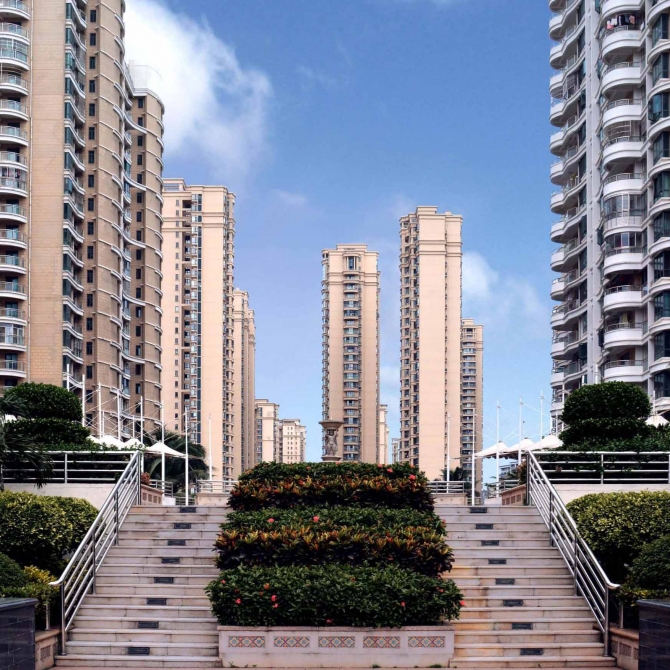 設(shè)計中居住建筑底層采用挑高架空的模式,使得住區(qū)組團內(nèi)部空間圍合而不封閉,建筑與建筑之間各自相對獨立,既可以將陽光引入開闊的庭園,又可以擁有足夠的陰涼場所供住區(qū)居民休閑和棲息,開敞的空間形成良好的自然通風(fēng),形成舒適的小氣候環(huán)境,彌補炎熱夏季及陰潮冬季不利的氣候影響。庭院內(nèi)大片的綠地、水景和起伏的地勢,與城市空間互動,構(gòu)成了獨特的熱帶海島風(fēng)光的生態(tài)大花園。