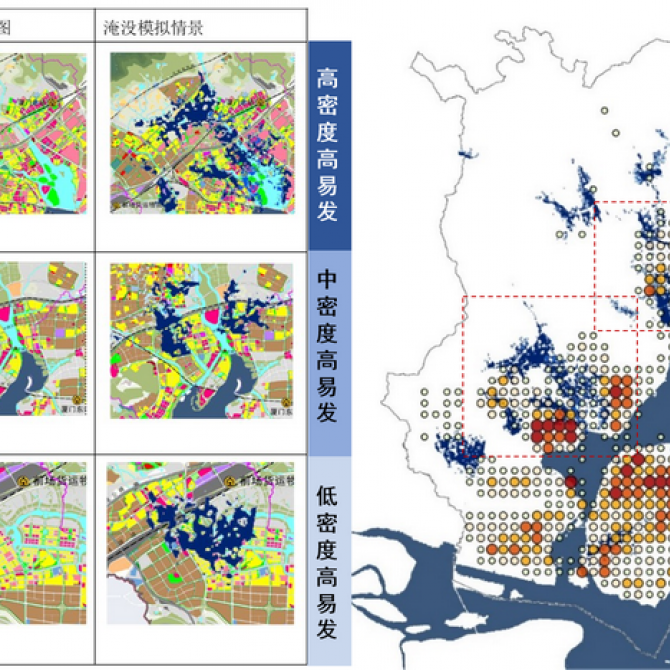 規劃針對快速城鎮化背景下濱海城市應對極端氣候災害的局限與不足,同時圍繞傳統防災規劃中的主觀性過強、實用性不足、系統性較差等問題,立足于數字化測繪、空間信息、物理環境模擬等高新技術手段,系統地建構濱海城市極端氣候災害評估及生態安全格局網絡設計方法,并針對廈門市提出具體的生態安全格局網絡設計方案和防災規劃措施。