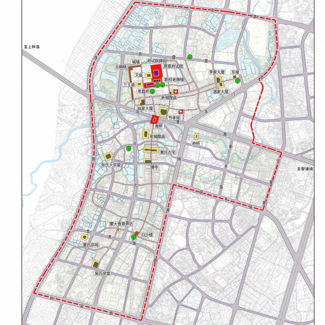 規(guī)劃本著“生態(tài)優(yōu)先、保護(hù)優(yōu)先、嚴(yán)格控制古城建設(shè)規(guī)模”的原則,創(chuàng)新性的拓寬與延展規(guī)劃控制內(nèi)容,將沒(méi)有納入保護(hù)體系的山水城空間格局、古城池、街巷空間、傳統(tǒng)民居、自然村落以及河塘水系等與文物古跡一起納入到保護(hù)內(nèi)容之中;將“活態(tài)保護(hù)”和“活化利用”內(nèi)容與方法納入規(guī)劃控制引導(dǎo),提出“三原率”和“生產(chǎn)性水體控制率”的引導(dǎo)指標(biāo);探索激活古城魅力與活力的更為審慎的更新模式與方法,通過(guò)微循環(huán)更新改造方法為該地區(qū)植入新職能。