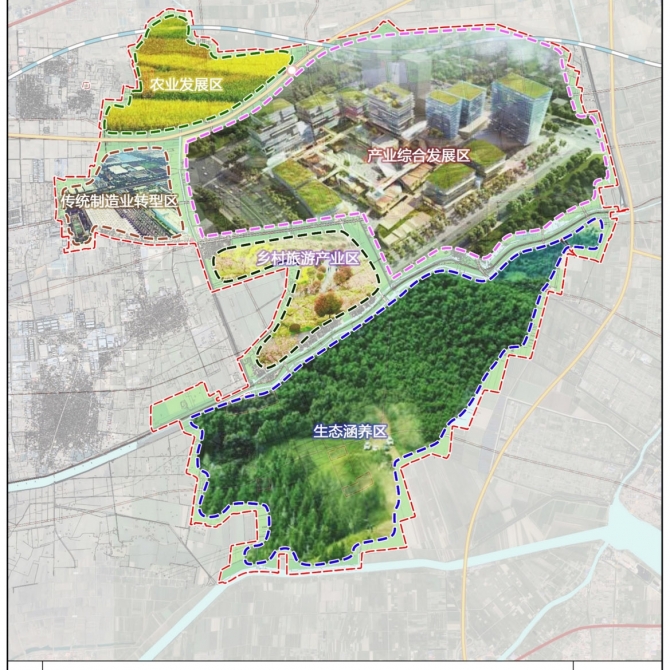 規劃針對快速城鎮化階段小城鎮發展典型問題,結合揚芬港鎮資源稟賦特色,強調區域協同,從“制造基地”走向“智造中心”,重現津霸雄走廊門戶重鎮;強調生態文明,從“資源經濟”走向“生態經濟”,重塑平原小城鎮宜居典范;強調以人文本,從“投資環境”走向“人本環境”,重構高品質人居支撐系統。