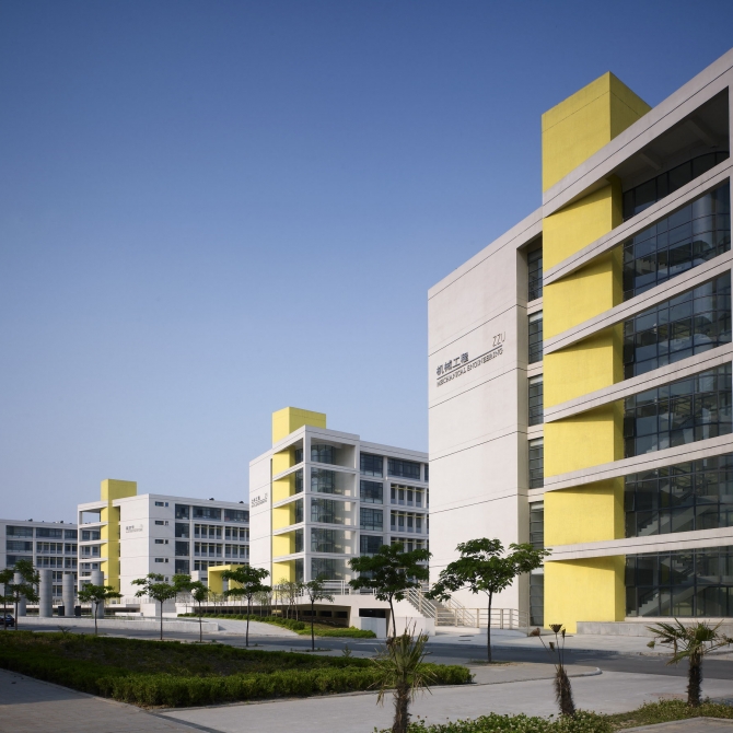 鄭州大學工科園注重與周邊建筑和環境之間的和諧整體關系,使之融入總體校園之中。設計依據現代教育模式發展現狀,對教學建筑進行更新組織和歸類,實現建筑和環境資源的共享;設計采用現代簡約的建筑造型語言和普通實用的建筑裝飾材料,強化優美的建筑體量關系和舒適人性化的場所創造,實現經濟、適用、美觀的高度統一。