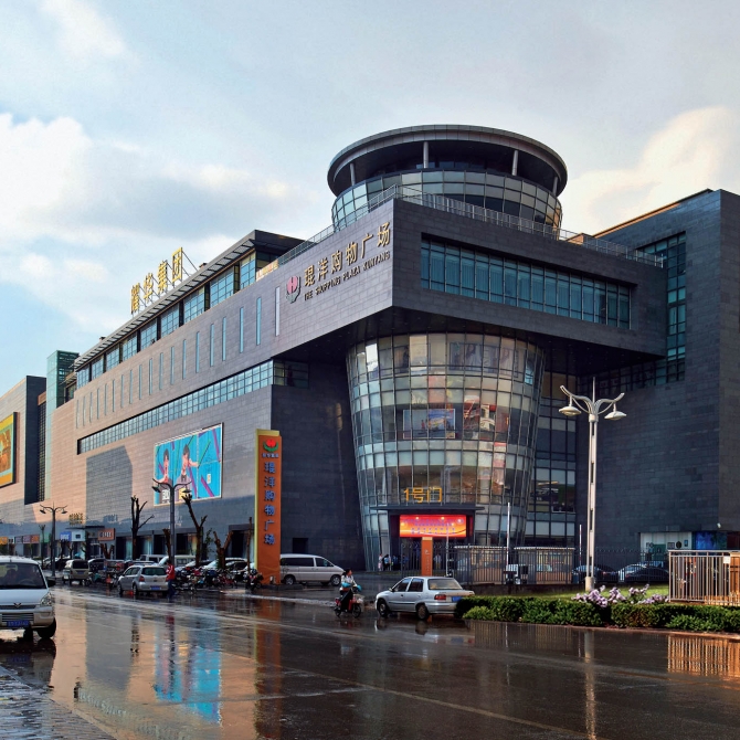 琨洋購物廣場西側沿主要商業街有200米的連續界面,南側有城市廣場,并從城市環路可以直接看到本項目。在建筑立面造型上以端莊穩重、典雅大方為前提,強調整體的雕塑感。