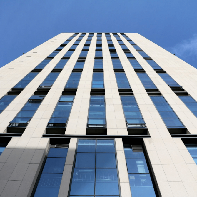造型整體強化豎向節奏,裙房三層寬而細長的矩形長窗,逐漸向上收縮成纖細且有韻律感的長窗矩陣,在頂部逐層遞退,形成塔式收束,沖天而上之感油然而生。