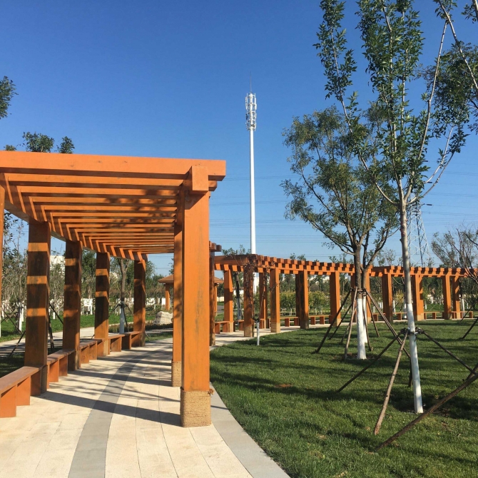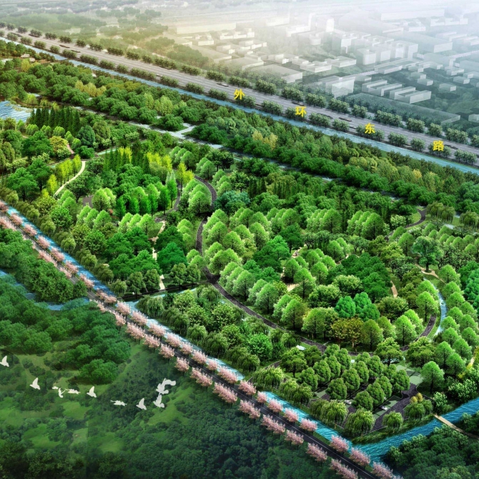 從天津市生態(tài)全局出發(fā),沿外環(huán)線建設500米寬的東麗外環(huán)郊野公園“綠廊”,與周圍銀河公園等公園綠地斑塊連接、融合,形成一體,增強城市生態(tài)系統(tǒng)的穩(wěn)定性,并為居民提供騎行、游憩、健身、觀光、采摘等休閑活動空間。