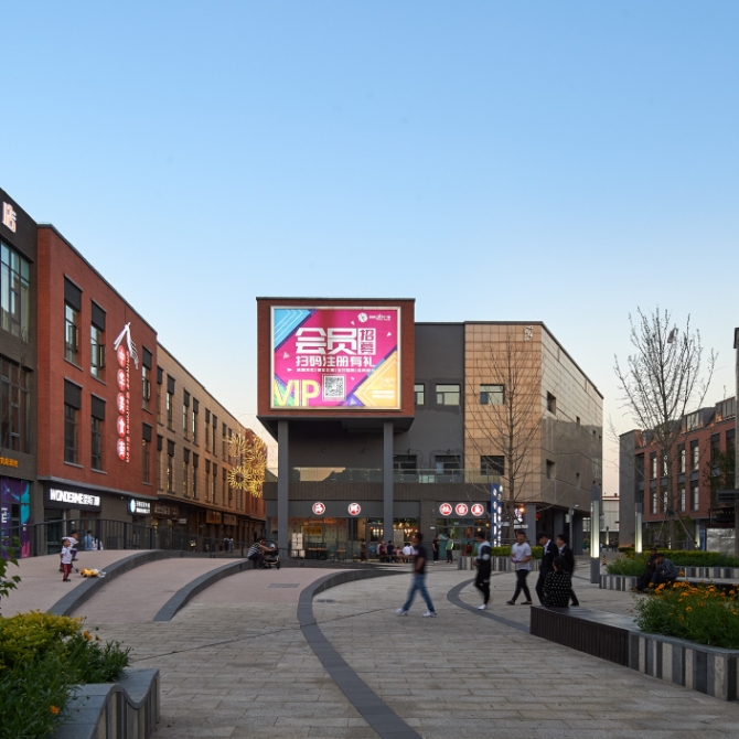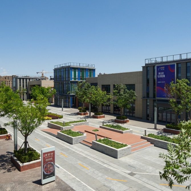 區(qū)域內(nèi)的弧形室外商業(yè)街是項(xiàng)目的核心地帶,蜿蜒曲折從而創(chuàng)造出一條活力動(dòng)感的商業(yè)步道,并在沿途適當(dāng)?shù)某叽缟洗┎逵幸幌盗械脑郝浜蛷V場,整體上將面積巨大的項(xiàng)目中各個(gè)商業(yè)景觀元素緊密聯(lián)系在一起。