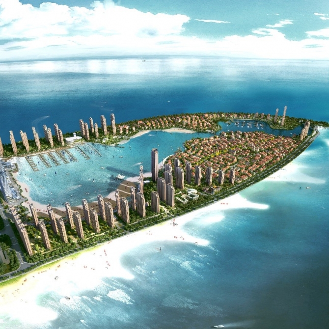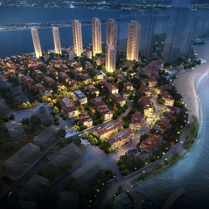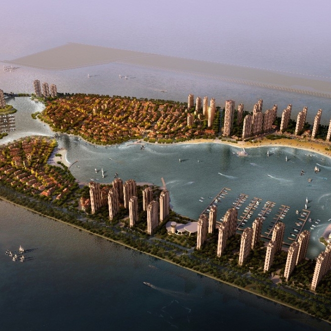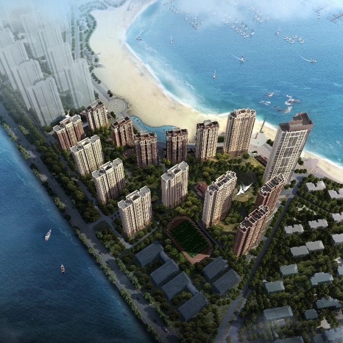 項目位于天津生態城中心漁港區域內,總建筑面積為39萬平方米,包括高層住宅、商業、地下室等。