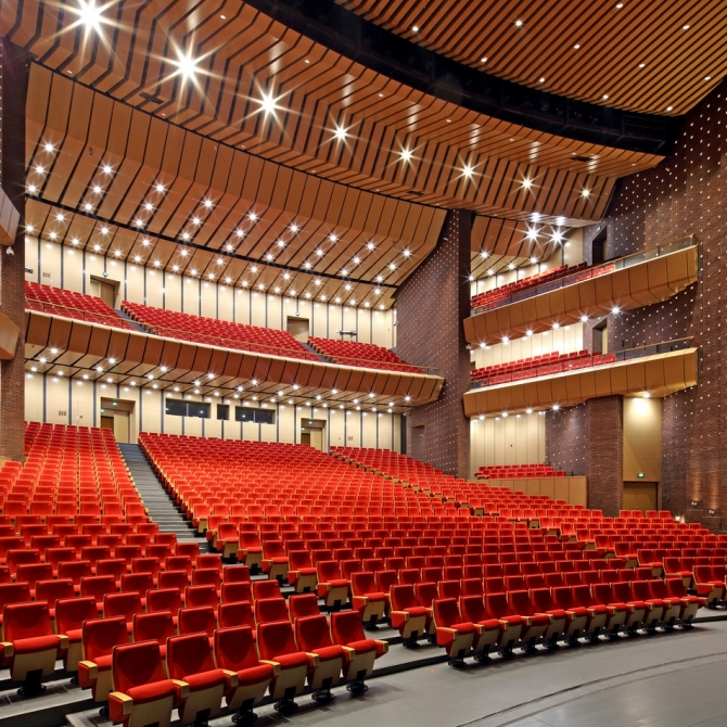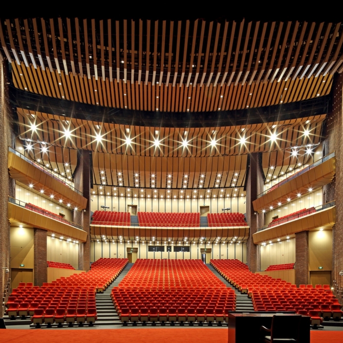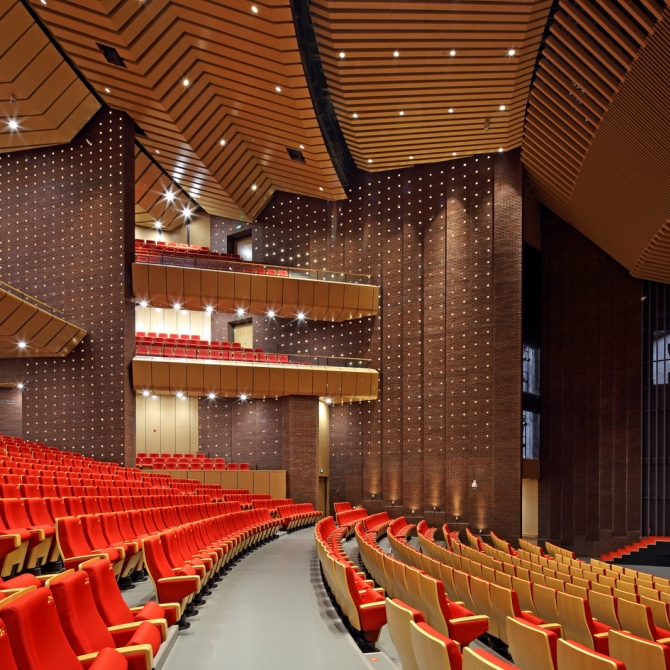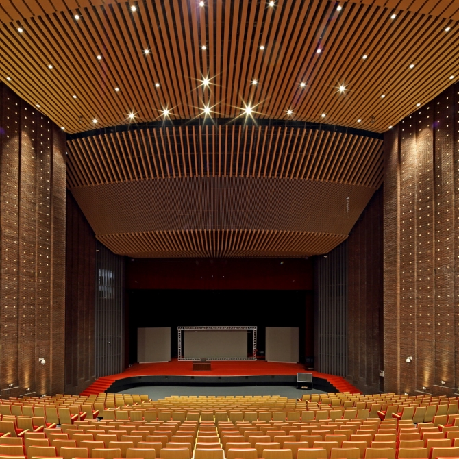 聲學設計團隊根據(jù)會堂的各使用業(yè)態(tài),進行了綜合模擬和優(yōu)化設計,確保各功能使用狀態(tài)下,會堂的聲場均能滿足使用要求。同時配合建筑設計對觀眾廳大型金屬格柵吊頂及大面積磚砌側(cè)墻進行了專項優(yōu)化,避免了吊頂共振和側(cè)墻反射不均勻,保證了聲學技術(shù)和視覺藝術(shù)的完美統(tǒng)一。