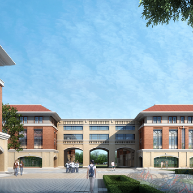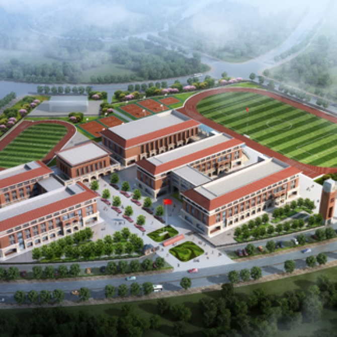 項目位于天津市寧河區橋北新區,是一所包含小學部和初中部各42個教學班的九年一貫制學校。