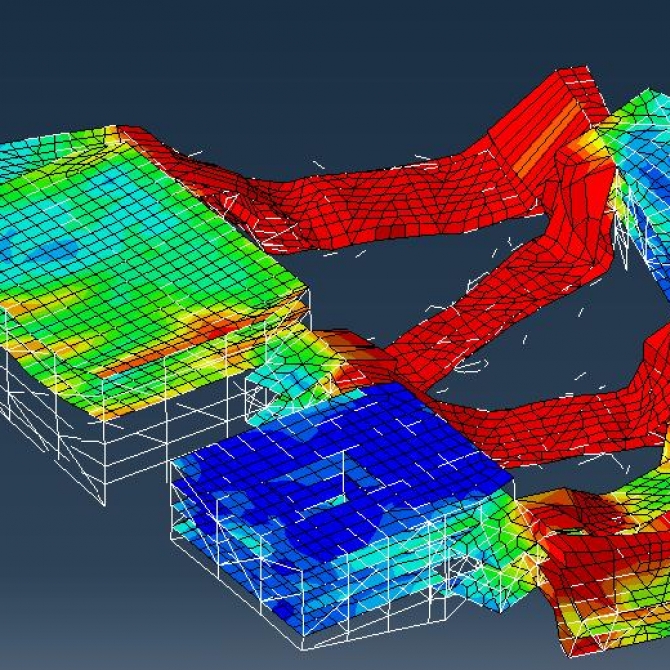 為滿足外圍無柱的建筑意圖,4個單體在底部都有切角,4個單體能落地的柱子較少,演奏廳、音樂廳及黑盒劇場均向外懸挑,懸挑桁架設置支撐,并與后方連廊桁架相連,從而防止傾覆。音樂學院結構體系復雜,根據結構特點,防倒塌分析是該結構設計的主要關注點,方案對整體結構進行靜力和地震作用下的全過程倒塌分析,分析結果表明結構設計合理,根據倒塌過程中的結構表現對結構布置提出了優化建議。
