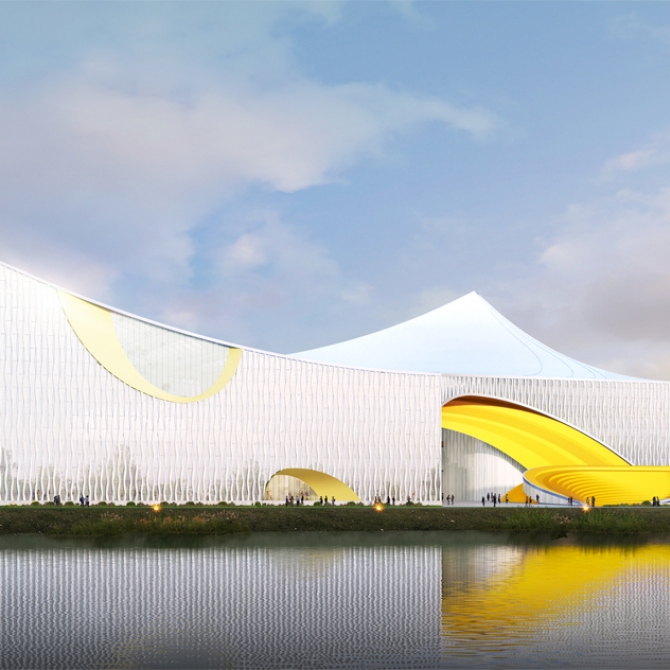 淮州新城文化中心一共包括四個部分:文化館、圖書館、群眾活動中心以及配套服務設施。