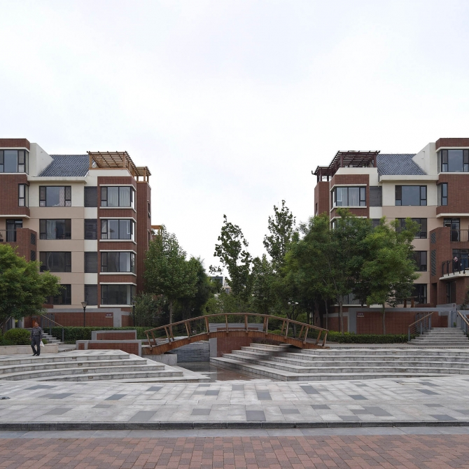 居住空間劃分為“高區(qū)+多院落”三棟18層點式高層住宅南北依次布置,位于小區(qū)北部靠近用地西側(cè);與東側(cè)多層住宅之間以帶狀綠地進行分割。既為小區(qū)北部提供了集中的綠化場地,又減少了對周邊多層住宅的日照干擾,使小區(qū)整體空間形象高低錯落、開闊有序。